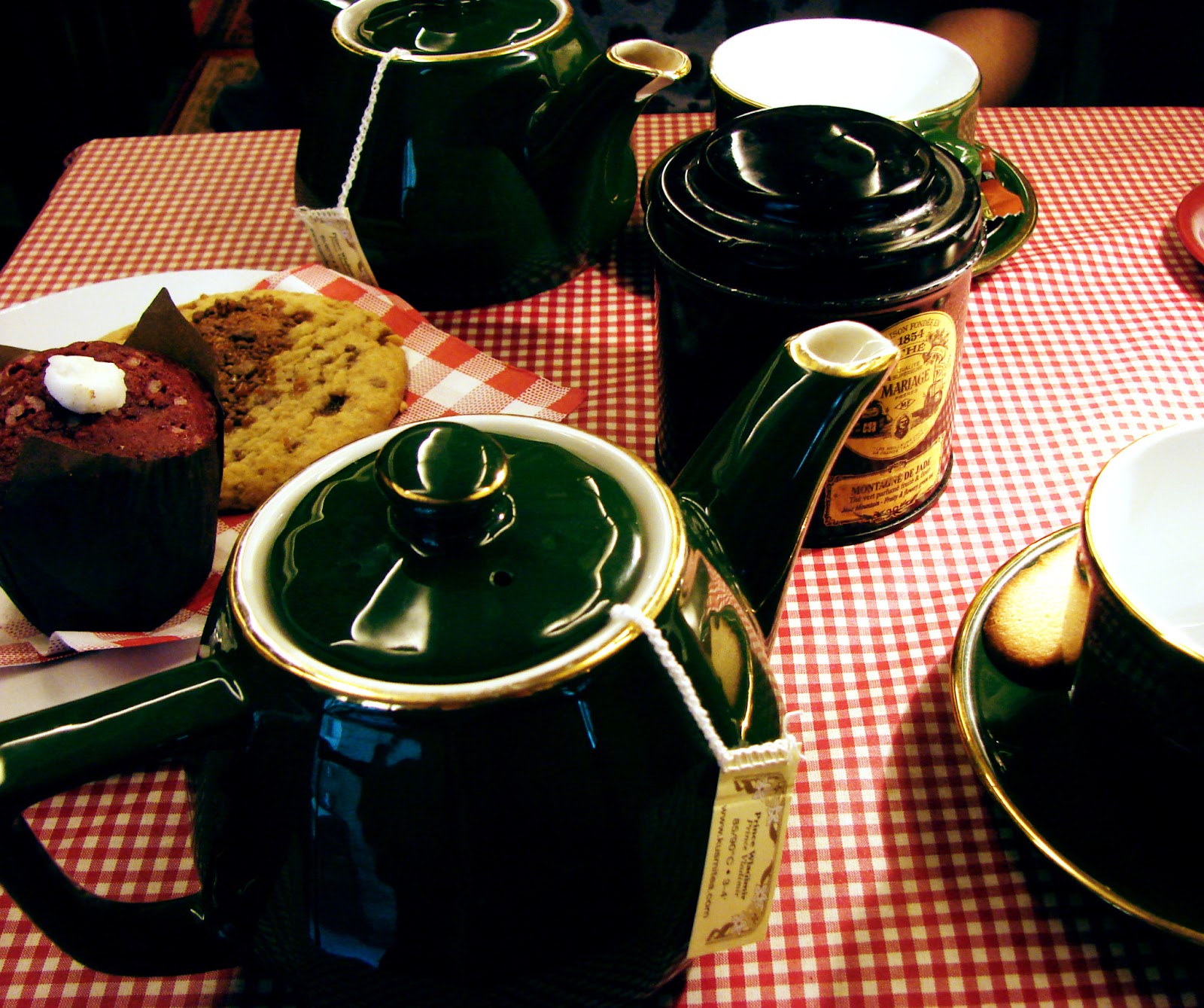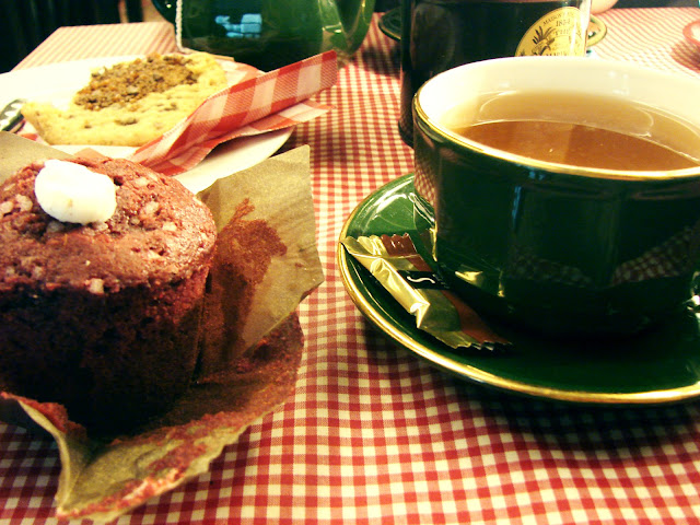 Ce jour-là, mon délicieux goûter était composé d'un thé : Prince Vladimir de Kusmi Tea, et d'une charmante pâtisserie maison, un muffin à la framboise doté d'un cœur coulant au chocolat blanc. Je conseille également leur chocolat chaud que j’appellerais plutôt crème au chocolat, leur cookie avec une pointe de caramel qu'on aperçoit sur les photos et leurs brownies au chocolat.